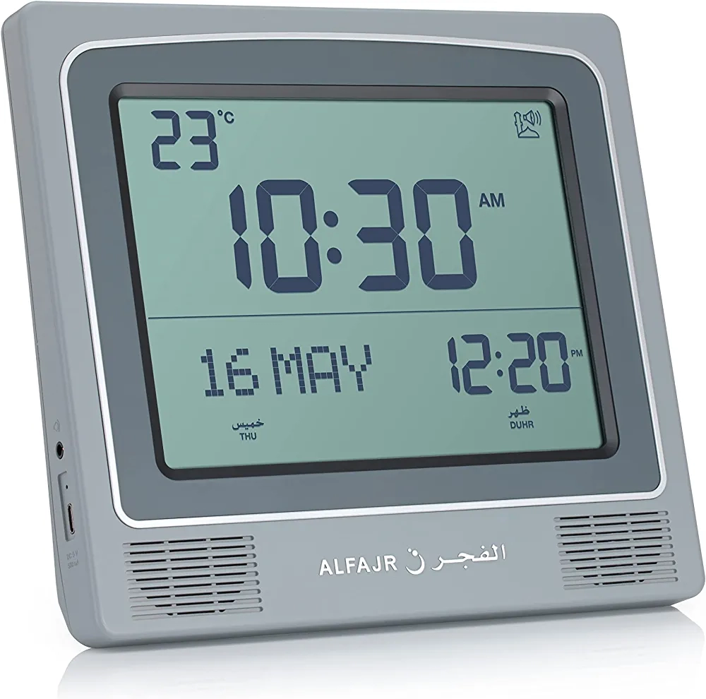 خصائص الساعة:مواقيت الصلاة في جميع مدن العالم.بوصلة الكترونية لتحديد اتجاه القبلة.منبه يومي بالاضافة الى منبهات لجميع الصلواتتقويم هجري و ميلاديلغة عربية أو انجليزيةمقاومة للماءقياسات الساعة:القطر: 37 ممالسماكة: 11 ممعرض السير: 20 مم